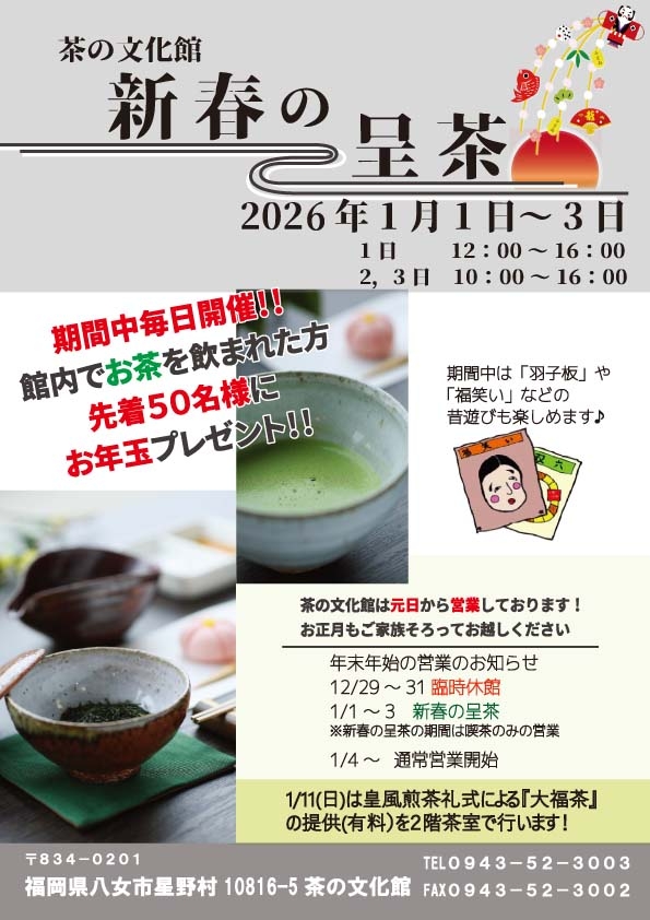 期間中毎日お茶をご注文の方先着50名様に新春お年玉のプレゼントあり!!