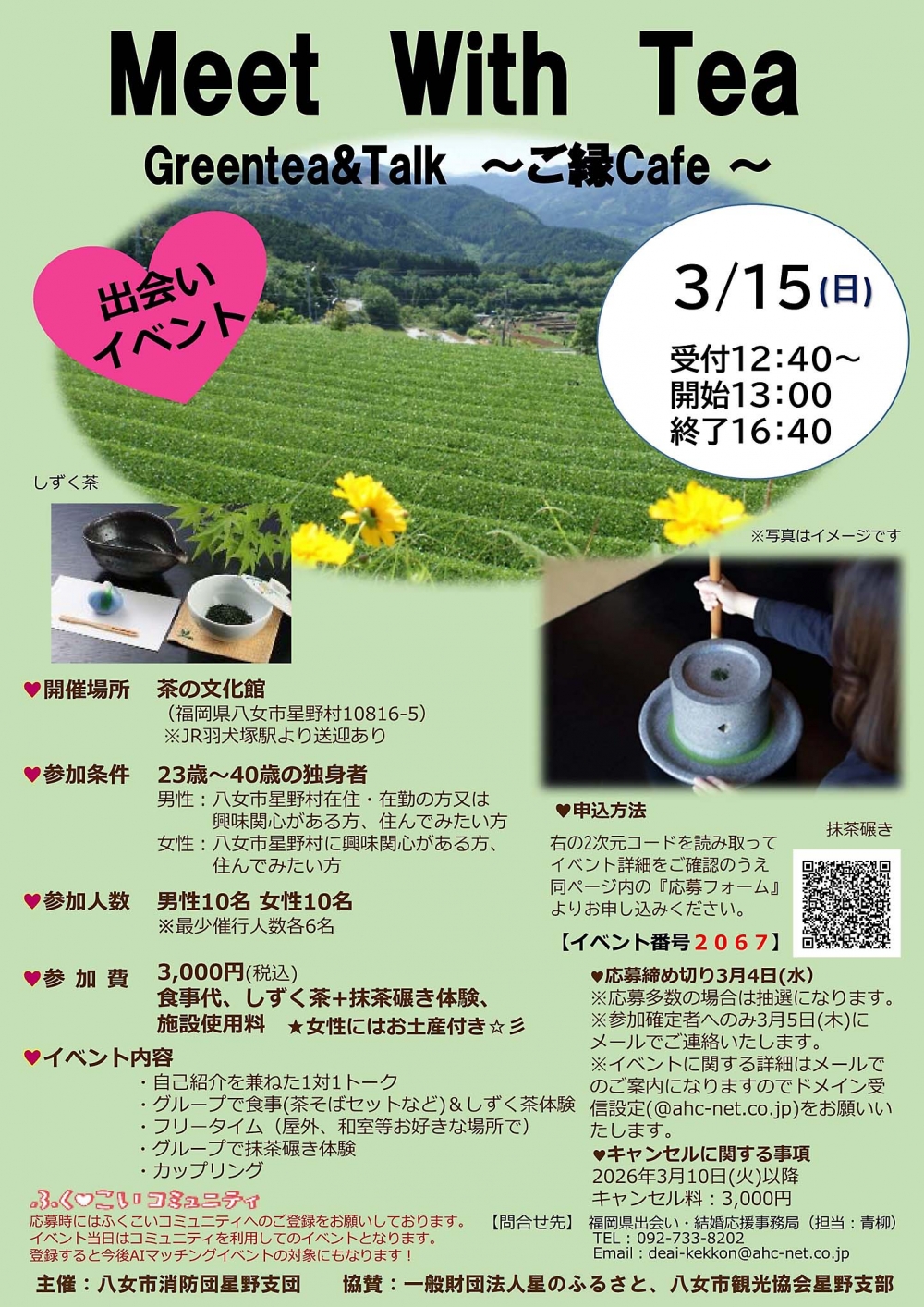 星野村の地元団体主催による婚活イベントが「茶の文化館」で開催されます。