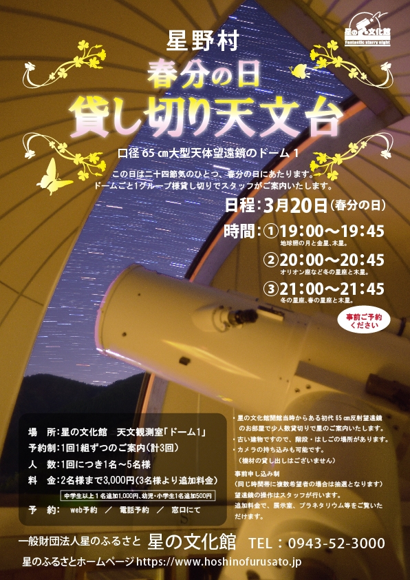 【お知らせ】3/20春分の日貸切天文台