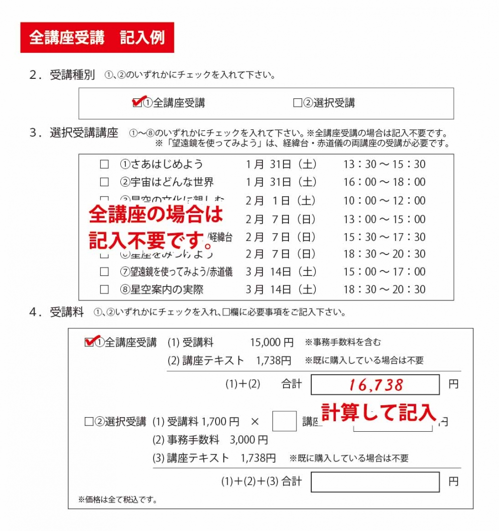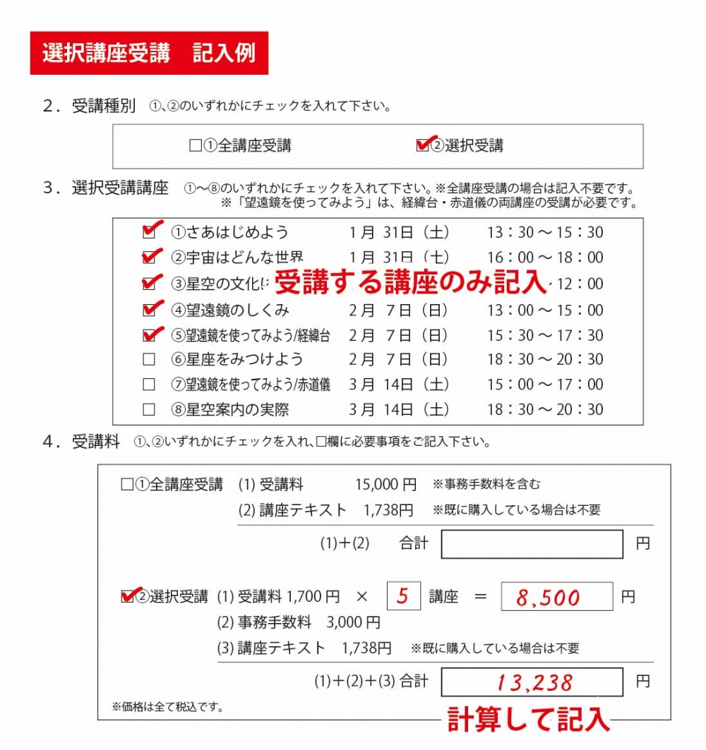 記入例を参考に、ご自分の受講料を計算してください。