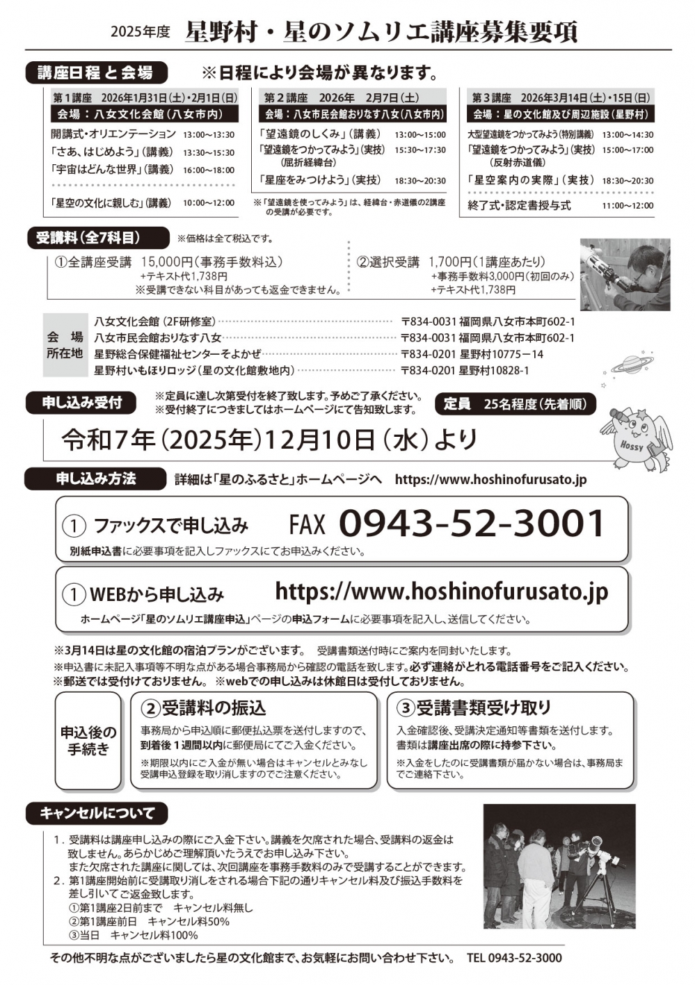 ■星野村・星のソムリエ講座お申し込みなど全般に関して