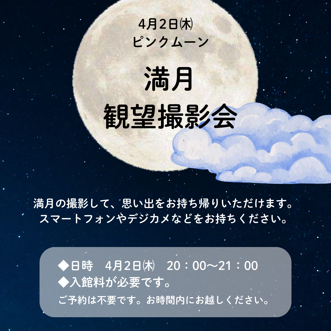 ★お持ちのスマートフォン、デジタルカメラなどで月の撮影にチャレンジできます。ご持参ください。